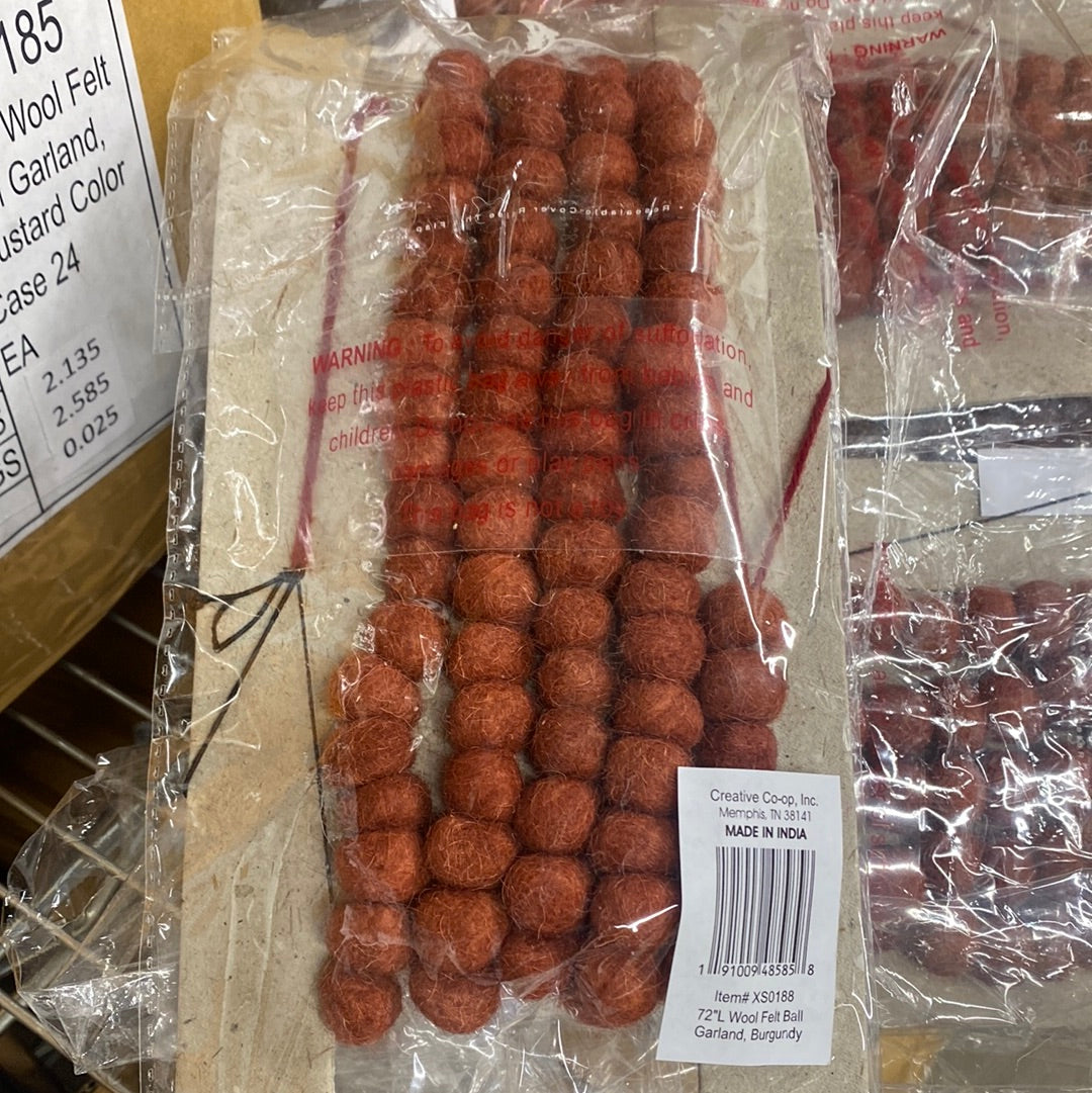 72”L Wool Felt Ball Garland- Burgundy Mini